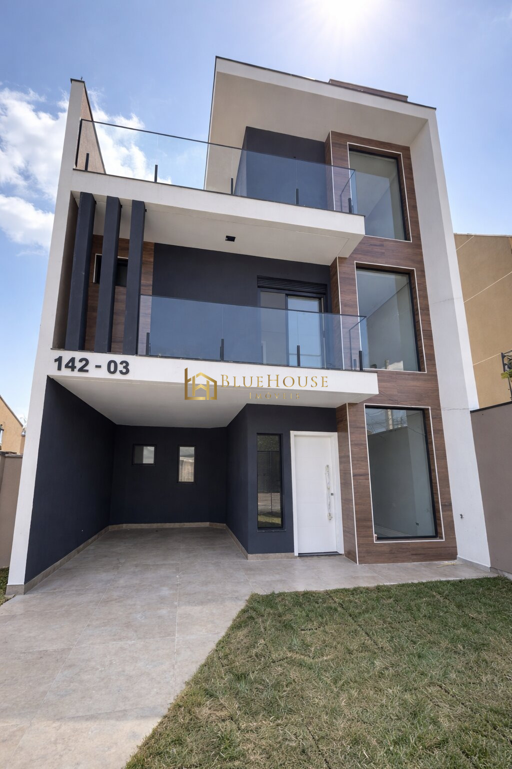 Com fachada moderna e amplas aberturas em vidro, os imóveis valorizam a iluminação natural e o design sofisticado.